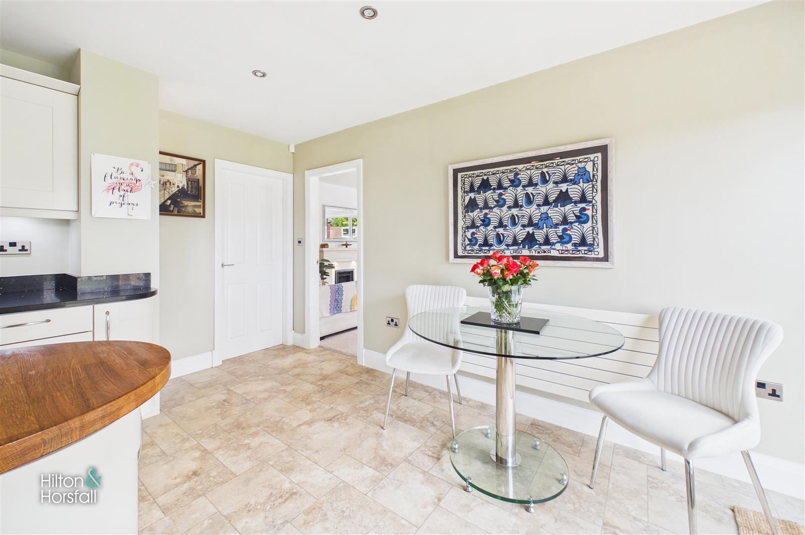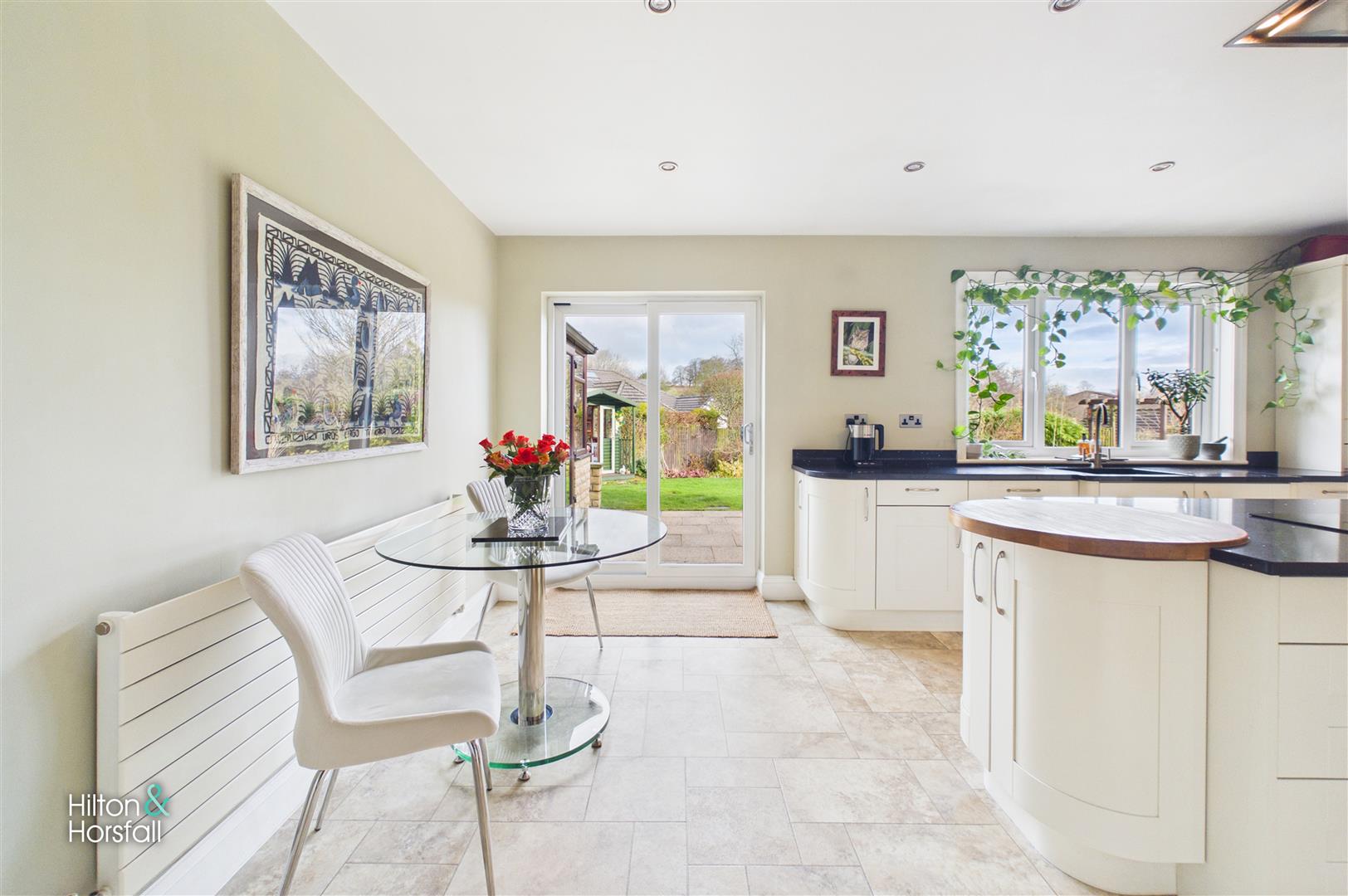 A superb and versatile garden room enjoying panoramic views over the beautifully maintained gardens, creating a bright and tranquil space to relax or entertain year-round. Featuring extensive glazing and a glazed roof that floods the room with natural light, this wonderful addition seamlessly connects the living accommodation to the outdoors, with double doors opening directly onto the patio and garden beyond. Offering ample space for both seating and dining areas, it’s an ideal spot to enjoy the privacy of the plot and the peaceful surroundings of this desirable cul-de-sac setting.