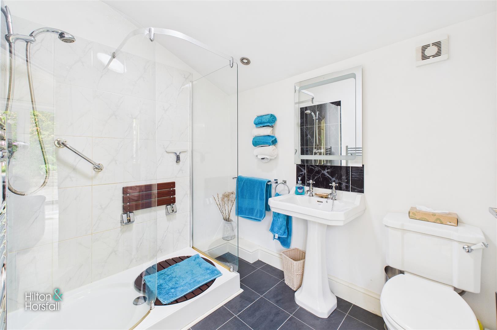 Fitted with a shower enclosure, WC, and pedestal wash basin — ideal for guests or multi-generational living.