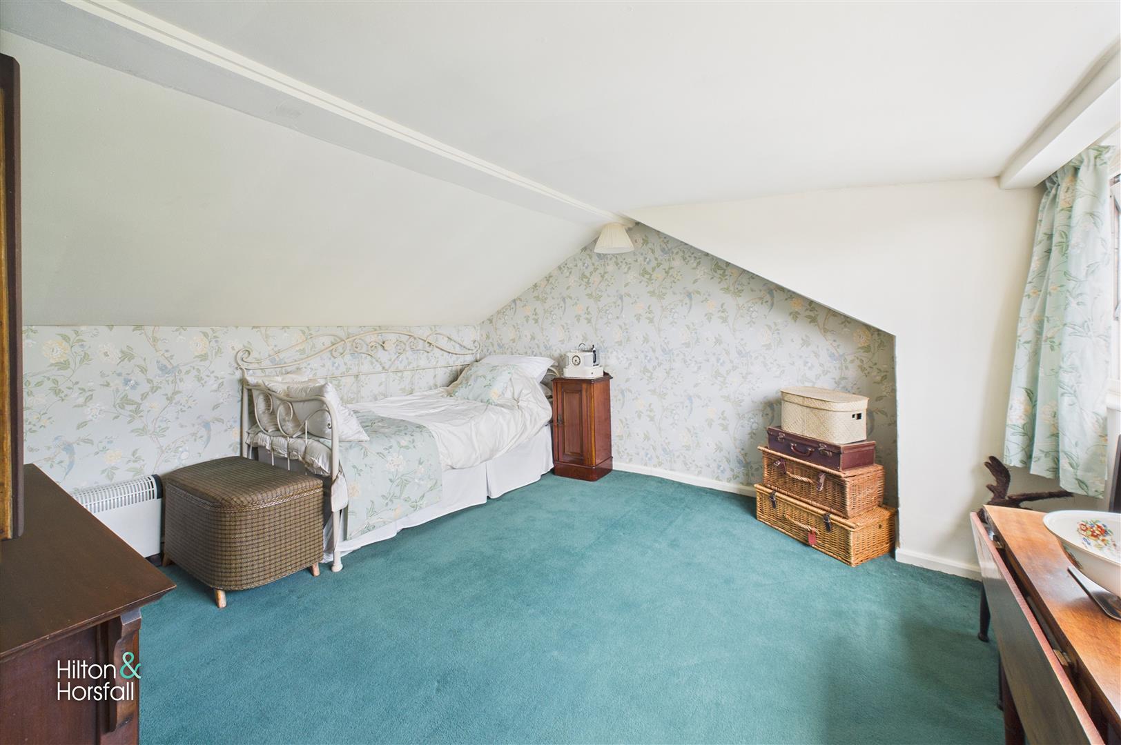 A generous, light-filled room with dormer window and far-reaching views, offering potential as a guest bedroom, studio, or hobby space.