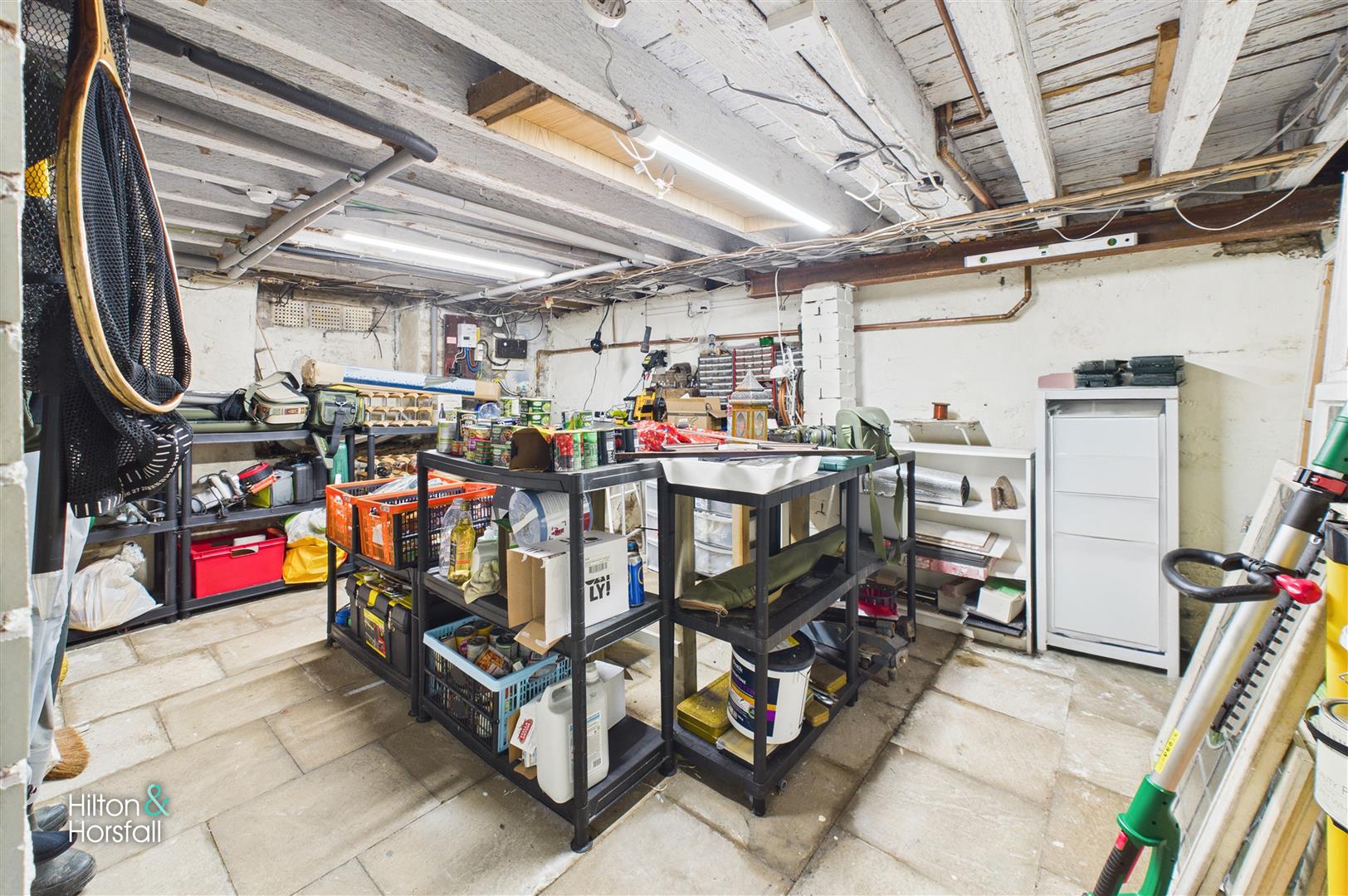 A sizeable storage/workshop space with stone flagged floor, ideal for hobbies, wine storage, or additional household storage.