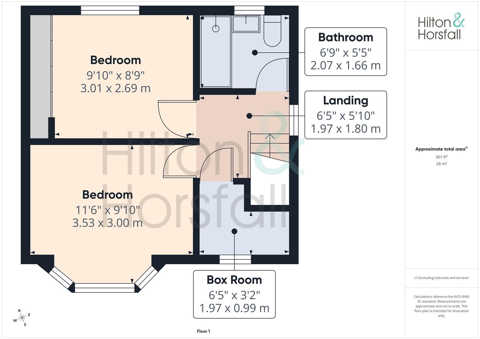 BEDROOM TWO 3.01m x 2.69m (9'10" x 8'9")