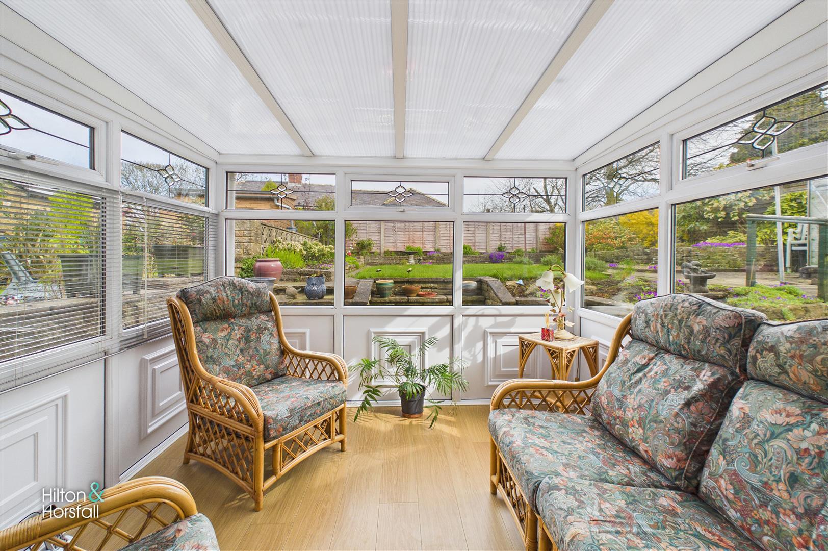 A light-filled conservatory positioned to the rear of the property, enjoying pleasant views over the garden. Surrounded by glazing, the space offers an abundance of natural light and provides an ideal additional sitting area or garden room, with direct access out onto the rear patio.