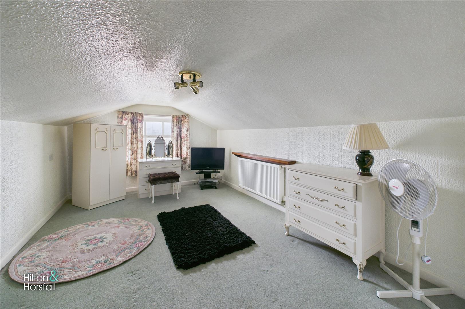 A spacious first-floor bedroom extending the full depth of the property, featuring a dormer-style window that provides pleasant natural light and views over the rear garden. The room offers generous floor space and would comfortably accommodate a double bed with additional furniture. With its characterful sloping ceilings and versatile layout, this bedroom presents an excellent opportunity for modernisation—perfect for creating a charming guest room, teenager’s room, or a stylish principal bedroom suite.