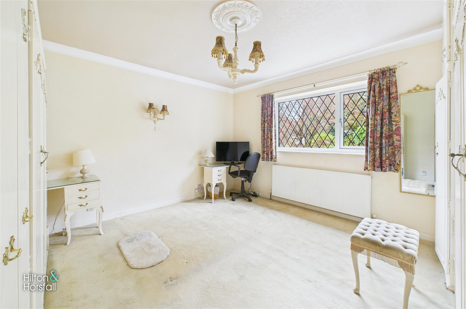 A generously sized double bedroom located on the ground floor, benefiting from a large window with leaded glazing that overlooks the front garden. The room offers ample floor space for bedroom furniture and features built-in wardrobes. This bright and versatile bedroom is ideal for those seeking level living and provides an excellent opportunity for modernisation to create a stylish and comfortable principal bedroom.