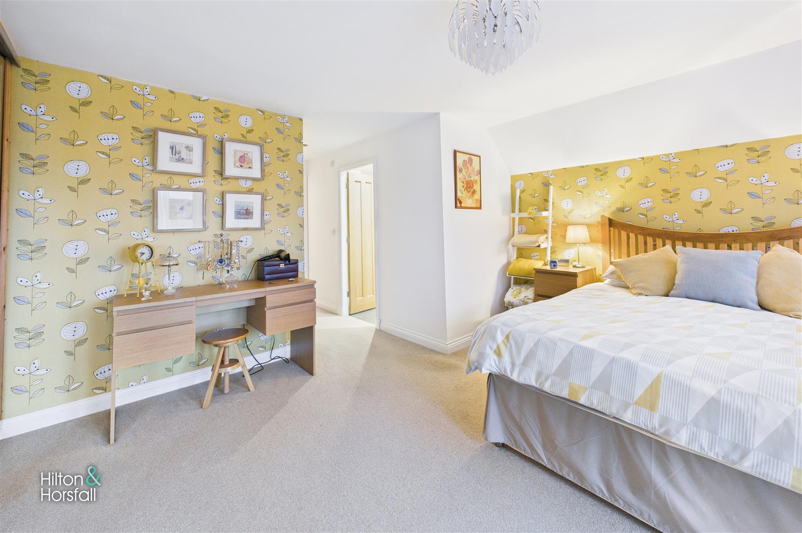 A well-presented bedroom positioned to the side elevation, offering ample space for single or twin beds. The room is decorated in a light and cheerful style, with a large window providing natural light and pleasant views. Ideal as a child’s room, guest bedroom, or home office, this versatile space is both comfortable and inviting.