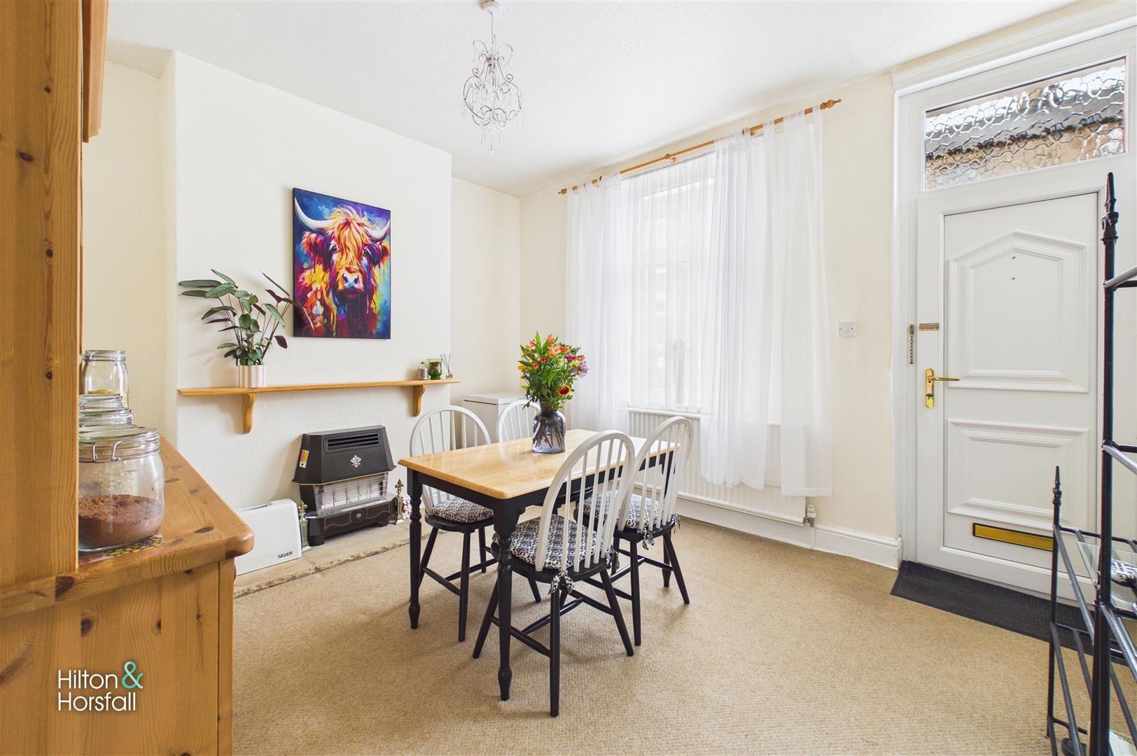 A light and inviting sitting room positioned to the front of the property, having a uPVC double glazed window and entrance door allowing for plenty of natural light. The room is well proportioned and provides ample space for a dining table and chairs, with a feature fireplace creating a focal point. Open access leads through to the inner hallway and onto the main living accommodation.