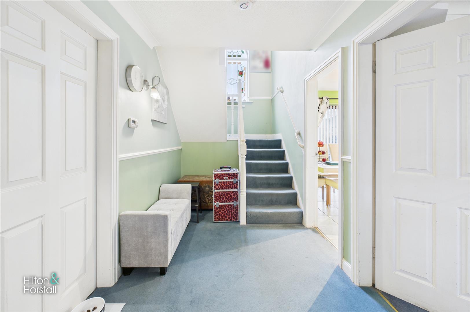 A welcoming and well-proportioned entrance hallway providing access to the main ground floor rooms and ground floor WC, with a staircase leading to the first floor and space for occasional furniture.