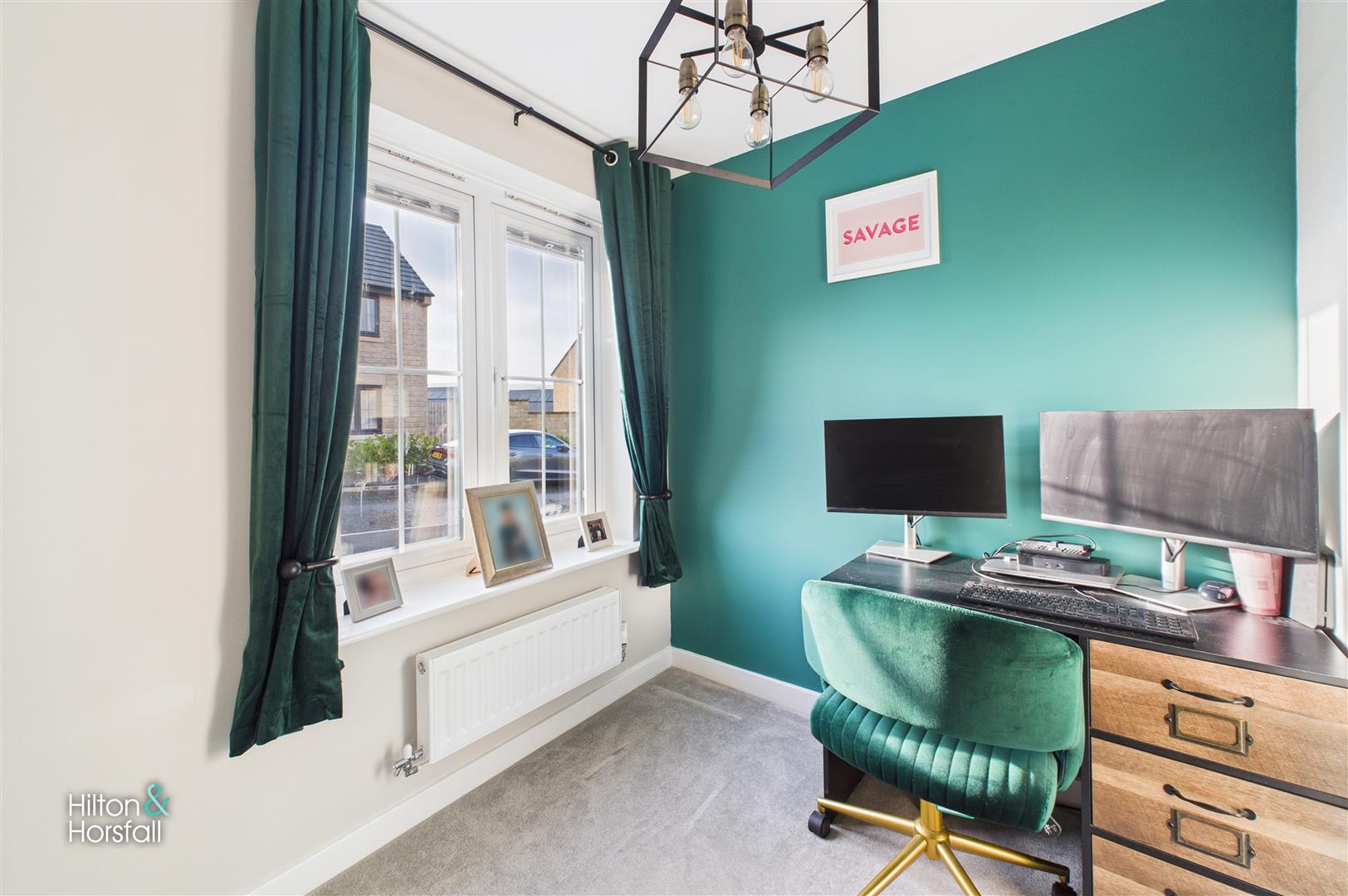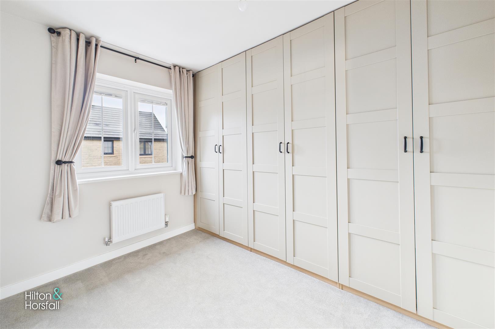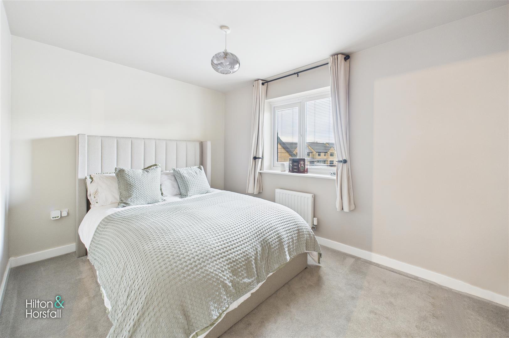 A well-proportioned bedroom positioned to the rear of the property, finished in a modern, neutral colour palette and fitted with soft carpeting. The room provides a comfortable and versatile space, ideal for use as a bedroom, guest room or home office. A rear-facing window allows natural light to fill the room, while there is ample space for a bed and additional bedroom furniture, making this a practical and flexible addition to the home.