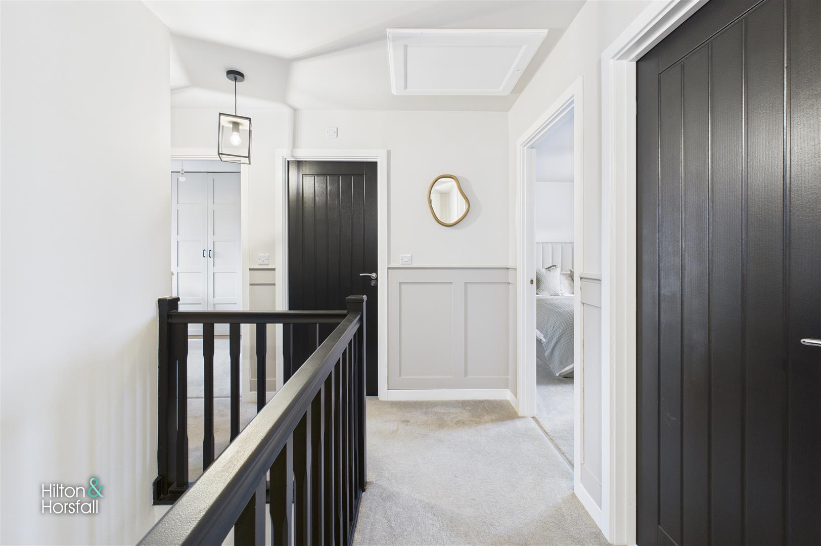 A bright and well-presented first floor landing providing access to all first floor accommodation. Finished with soft neutral décor and fitted carpeting, the space is enhanced by stylish panelling and modern lighting, creating a clean and contemporary feel.