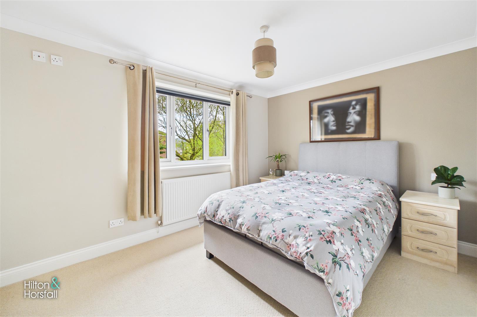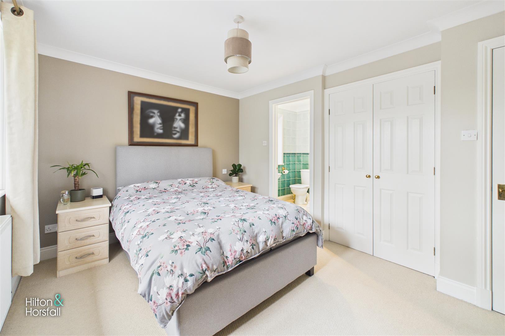 A spacious double bedroom located to the rear of the property, offering a peaceful outlook and plenty of natural light through a large window. The room benefits from fitted wardrobe storage and provides ample space for bedroom furniture, along with access through to a private ensuite, making it a comfortable and practical main bedroom.