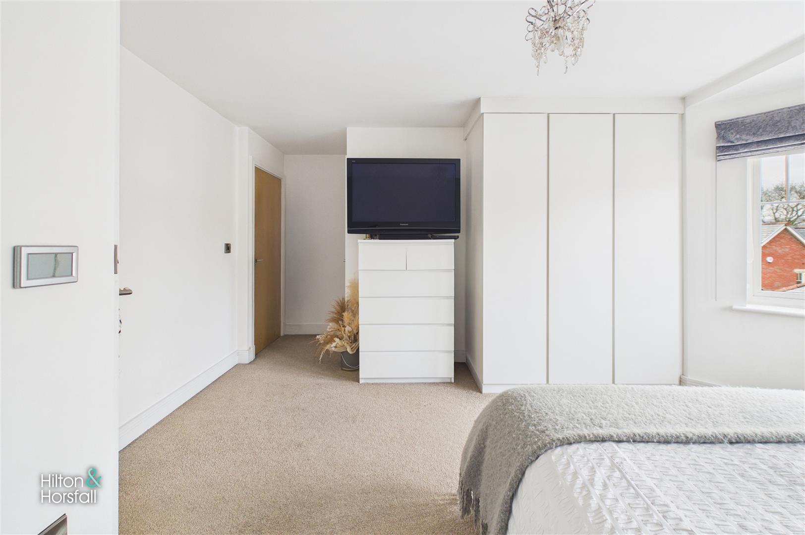 A well-proportioned double bedroom positioned to the front of the property, featuring a large bay window that allows for plenty of natural light. The room benefits from fitted wardrobes providing useful storage and also enjoys the added advantage of direct access to a private ensuite shower room.