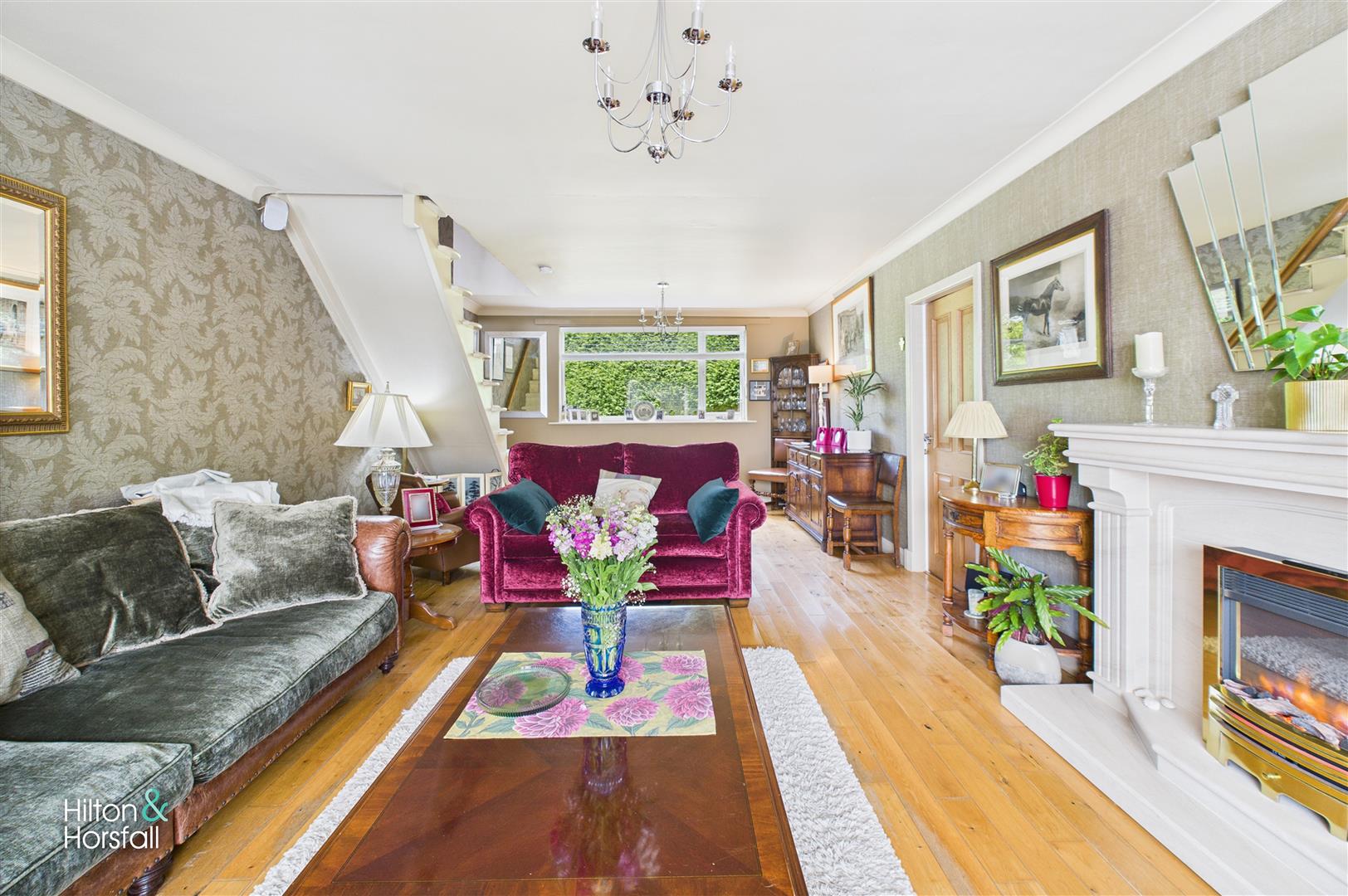 A family sized living room with an electric fire set within a marble fire place, 2x radiators, solid oak flooring, television point, coving, 2x radiators and 2x uPVC double glazed windows to the front and rear elevations.