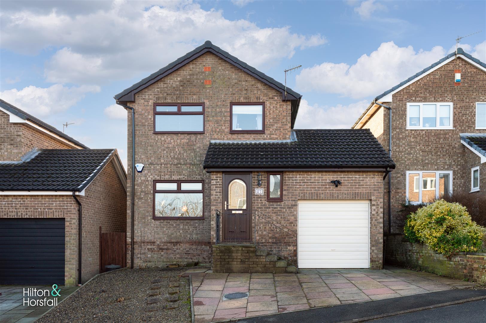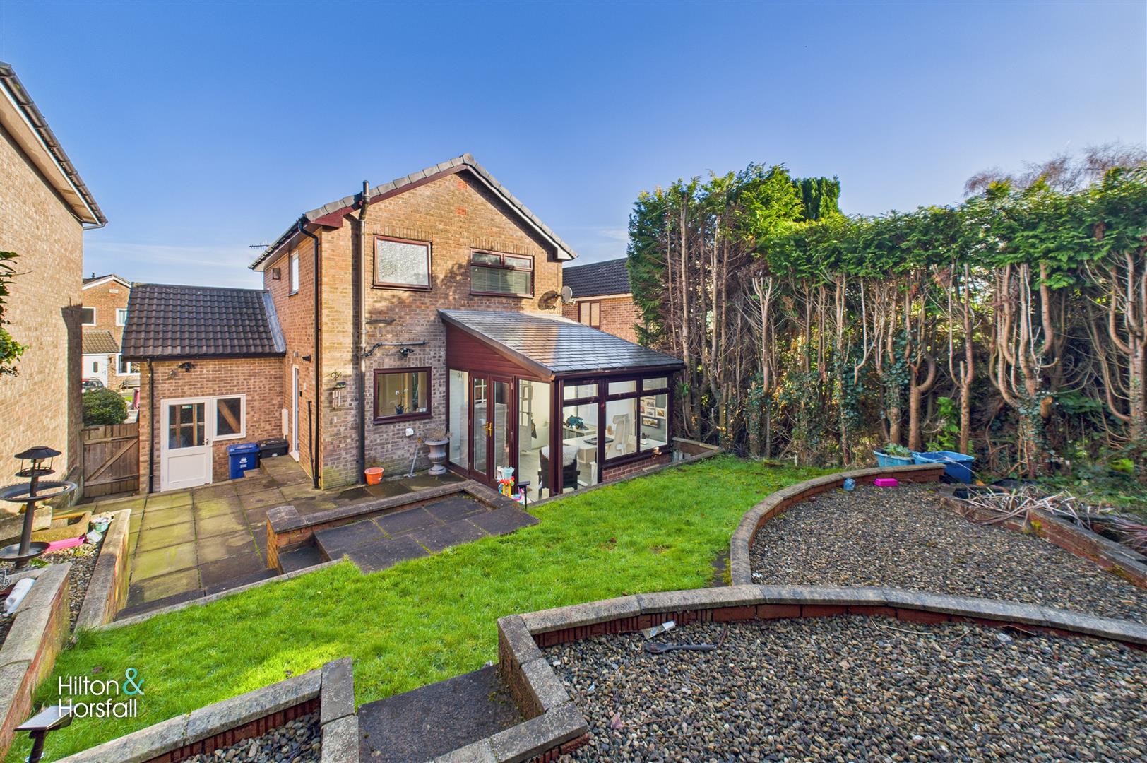 Situated in a quiet cul-de-sac location, 27 Hunters Drive is a well-presented three-bedroom detached home offering modern, family-friendly accommodation throughout. The property features a spacious open-plan living and dining area, a stylish rear-facing kitchen with side access, and a bright conservatory that opens directly onto the garden, creating a flexible and practical layout ideal for everyday living and entertaining. To the first floor are three bedrooms and a contemporary family bathroom, while externally the property benefits from a driveway, garage with ground floor space and first floor storage, and an enclosed rear garden complete with patio, lawn and pond feature. Conveniently located close to St Mary Magdalene’s School, Wellfield School and Chez Nanny Nursery, this is an excellent opportunity for families seeking a detached home in a popular and well-regarded residential area.