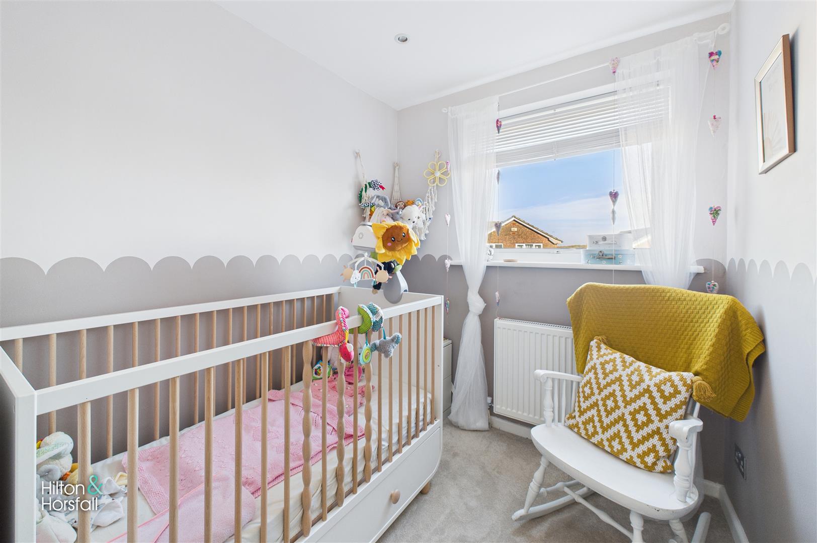 Bedroom three is positioned to the front of the property and offers a light and comfortable space, ideal for use as a child’s bedroom, nursery or home office. The room benefits from an inbuilt storage cupboard over the stairs, providing useful additional storage, and comfortably accommodates bedroom furniture while enjoying a pleasant front-facing outlook.