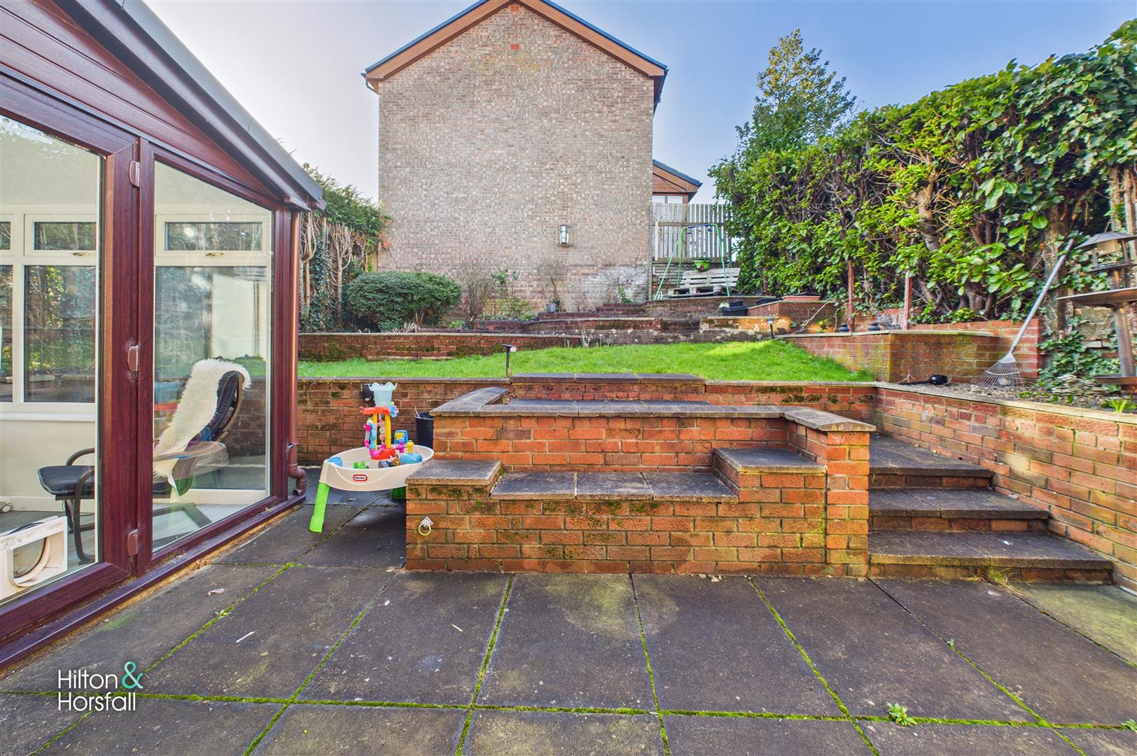 • Enclosed rear garden with patio & pond feature