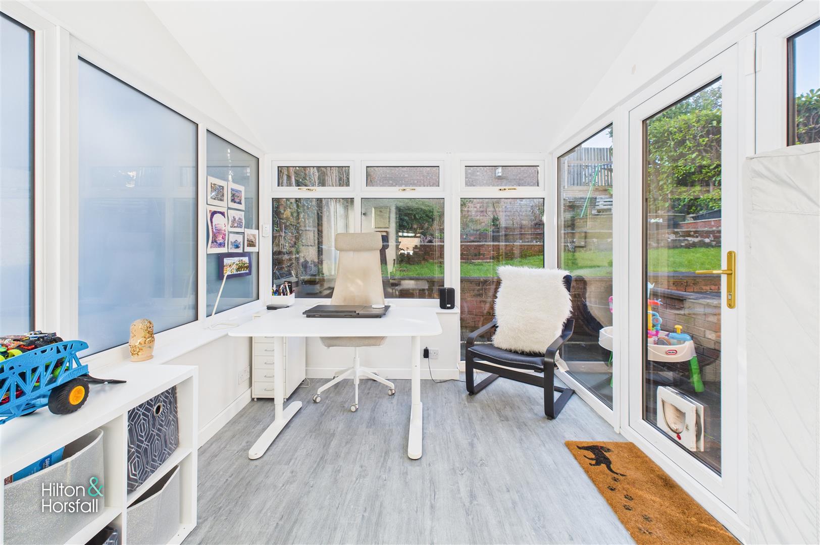 The conservatory is a bright and versatile addition to the home, enjoying attractive views over the rear garden and providing an ideal space for a range of uses, including a sitting area, home office or playroom. Featuring glazed windows and French doors opening directly onto the patio, the room allows plenty of natural light to flood in and creates a seamless connection between the indoor and outdoor space, making it perfect for everyday family living.
