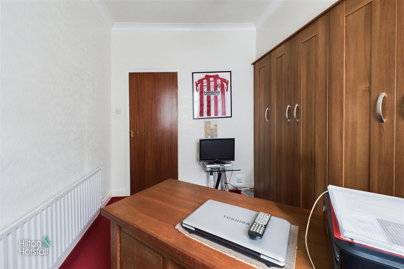 A good sized double bedroom with fitted wardrobes, 1x radiator, fitted eaves storage and a uPVC double glazed window to the rear elevation.