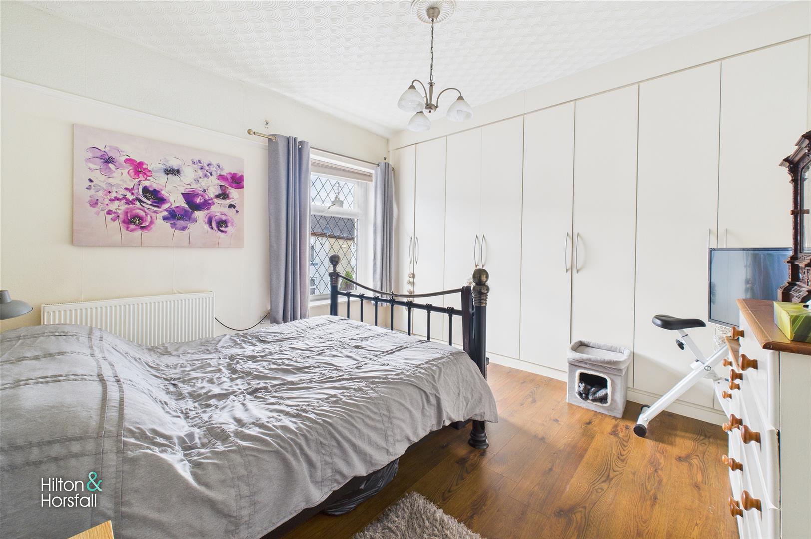 A generous double bedroom located to the front of the property, complete with a large window that allows natural light to flow through the room. This well-presented space features an extensive range of fitted wardrobes, offering excellent storage, along with wood-effect flooring and neutral décor. A comfortable and spacious principal bedroom.