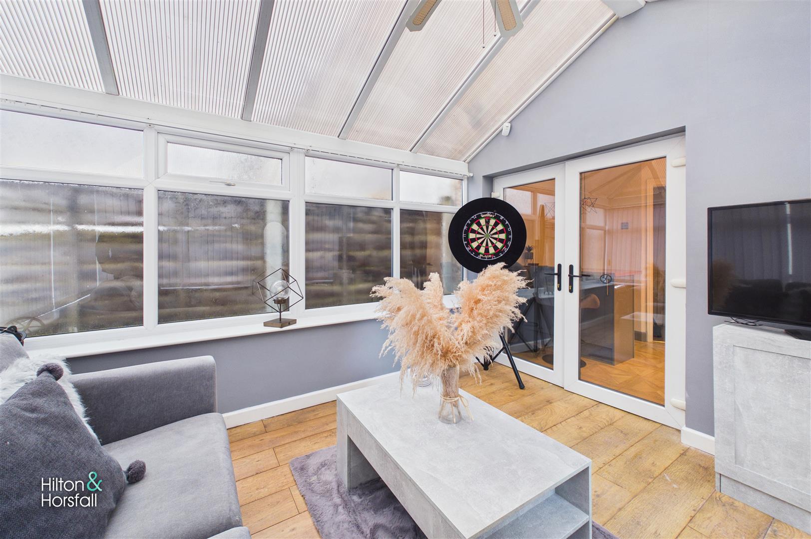 A bright and versatile conservatory located to the rear of the property, providing an excellent additional reception space. Surrounded by glazing and topped with a pitched roof, the room is filled with natural light and offers pleasant views over the rear yard. Ideal for use as a sitting area, dining space, or home office, with direct access leading outside, making it a superb extension of the living accommodation.