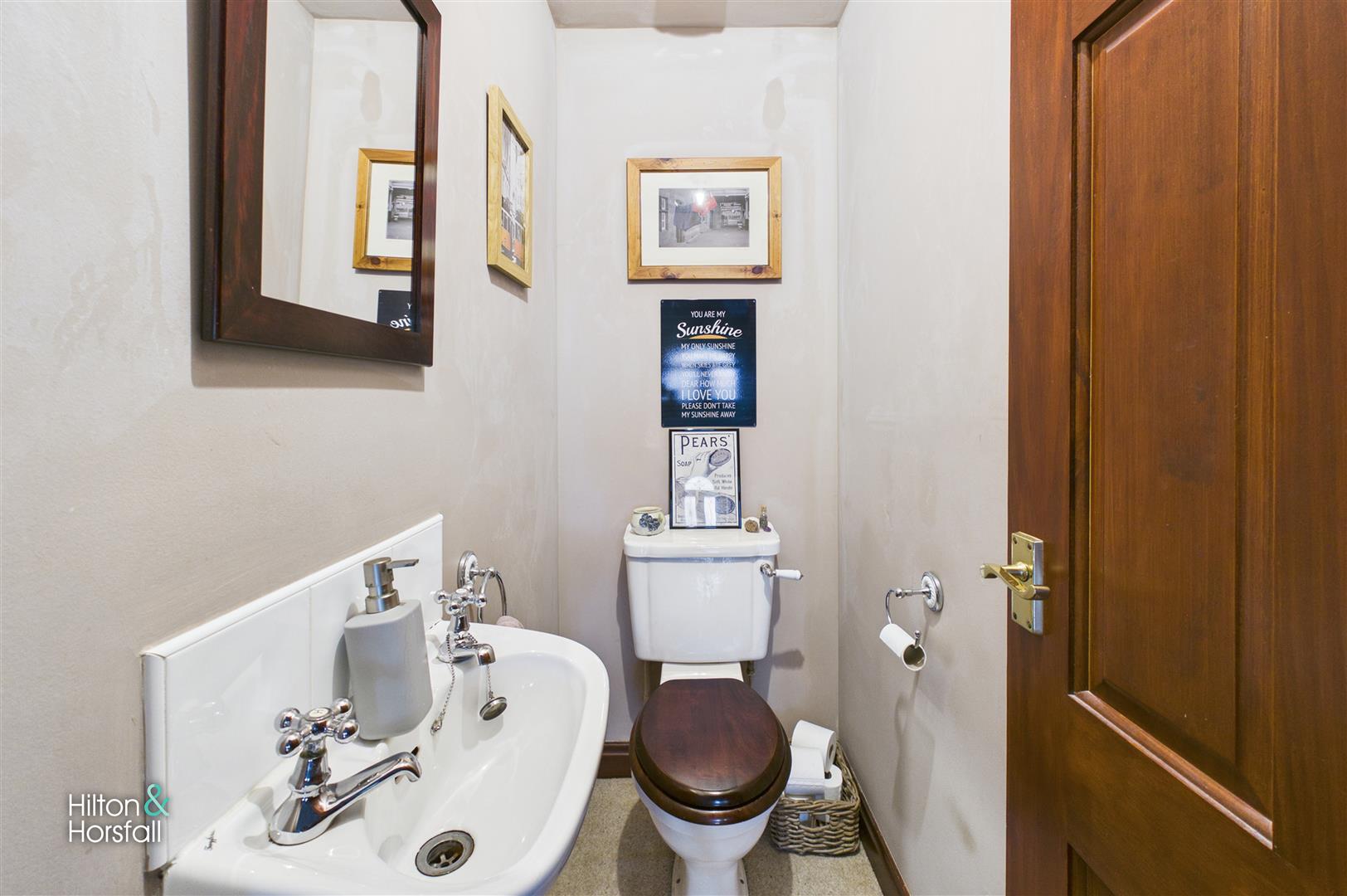 A useful ground floor WC fitted with a two-piece suite comprising a low level WC and wash hand basin. The room is partially tiled and provides a practical addition to the accommodation.