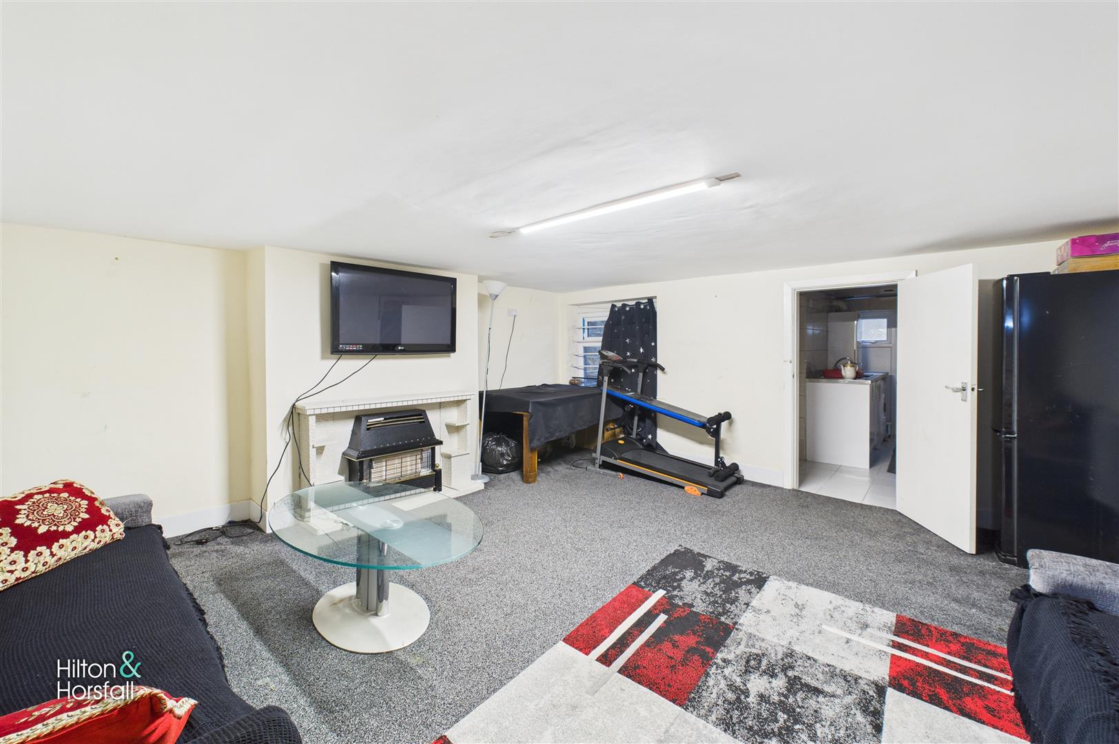 A further sizeable cellar room providing excellent additional space, ideal for storage, a hobby area, or a home gym setup. The room is carpeted for comfort and features a wall-mounted gas heater along with useful built-in recesses. This versatile space also offers access through to the lower-ground-floor kitchen, enhancing practicality and making the entire level highly functional for a range of non-habitable uses.