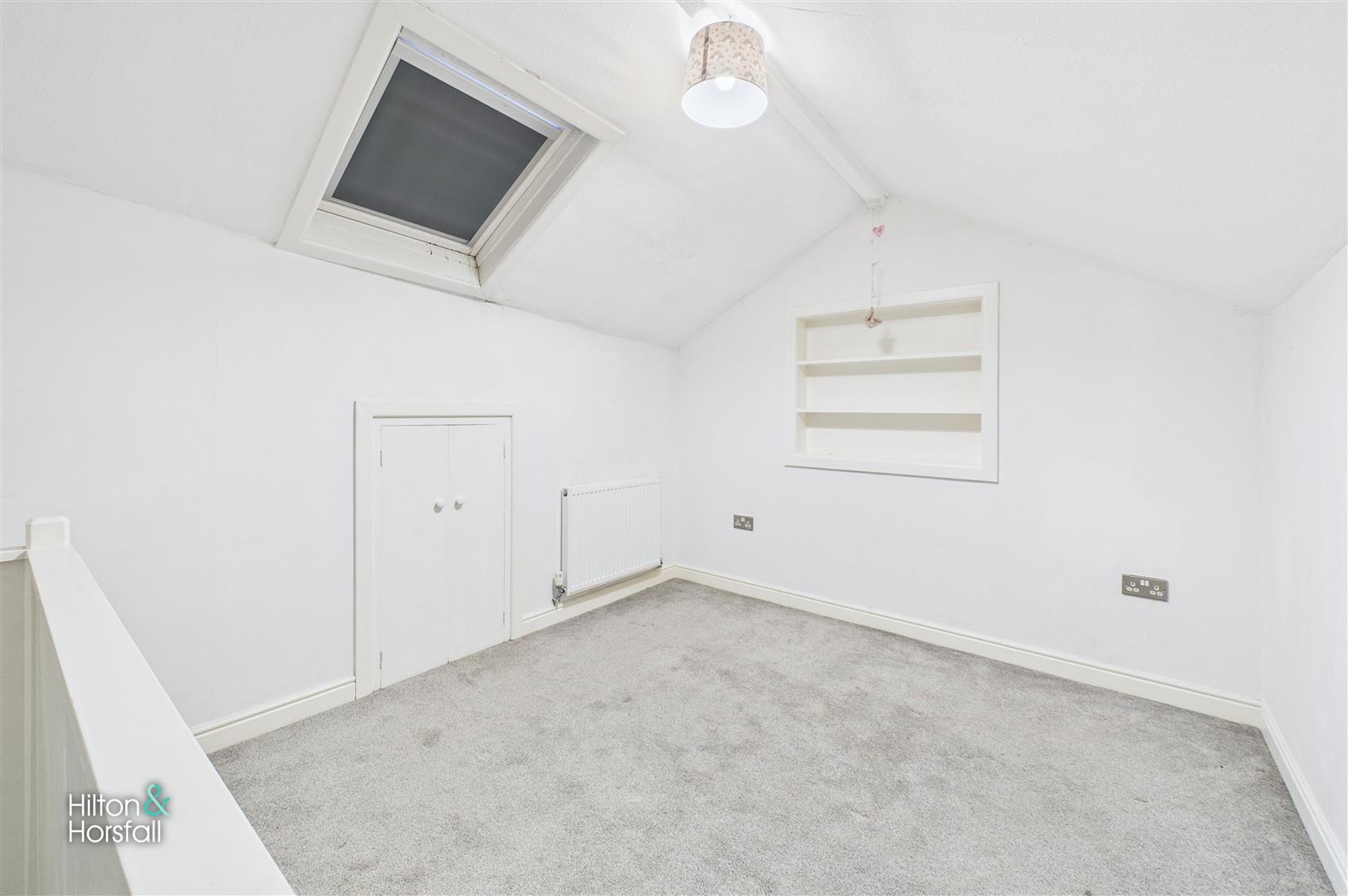Located on the second floor with a velux window, 1x radiator, inbuilt shelving and storage in the eaves.
