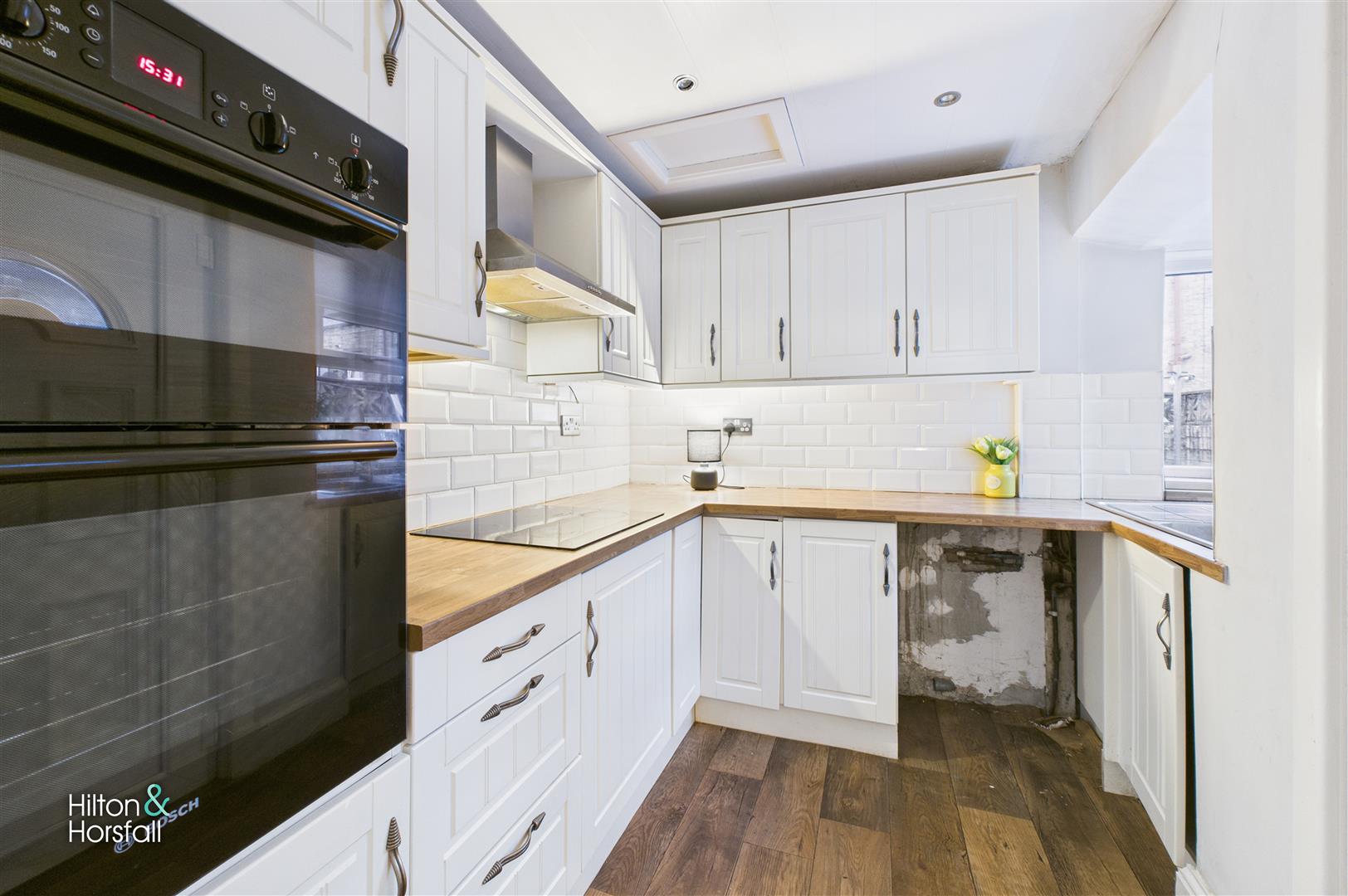 Having fitted wall and base units, contrasting work surfaces over, wood effect flooring, recessed spot lights, integrated Bosch oven and grill, under counter fridge, access to the loft hatch, plumbing for a washing machine, 4-ring glass electric hob and air extractor.