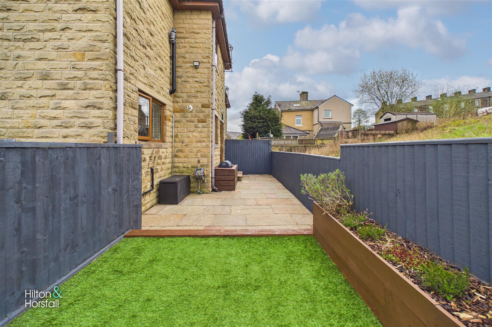 To the front, the property benefits from off-road parking leading to a garage, providing excellent storage or secure parking. To the rear is a private and low-maintenance garden, thoughtfully designed with a decked seating area, artificial lawn and raised planters, creating a stylish and usable outdoor space ideal for relaxing or entertaining. The garden is fully enclosed, offering a good degree of privacy.