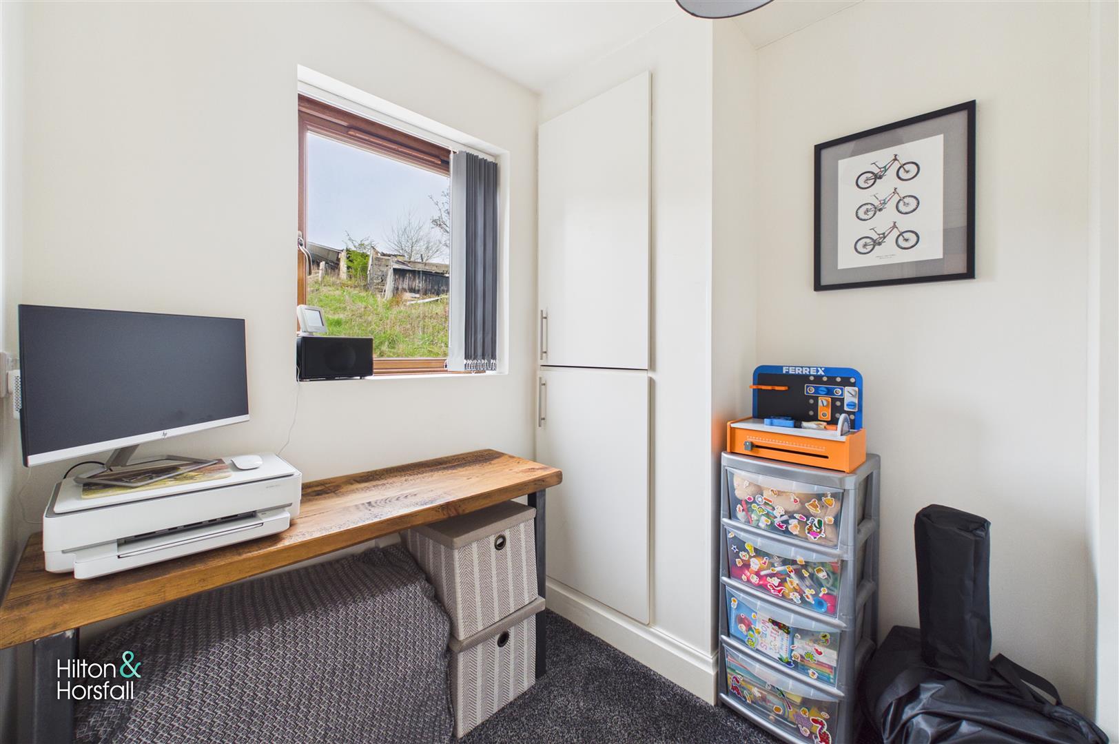 A useful and versatile study, ideal for those working from home or in need of a quiet workspace. The room benefits from a window providing natural light, along with space for a desk and additional storage, making it a practical and functional addition to the home.