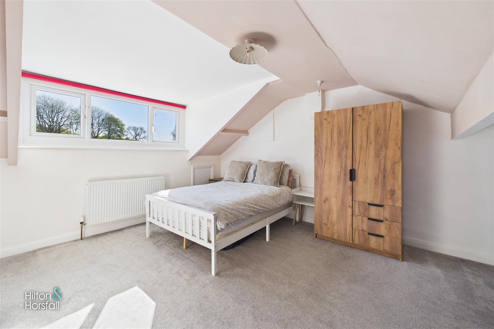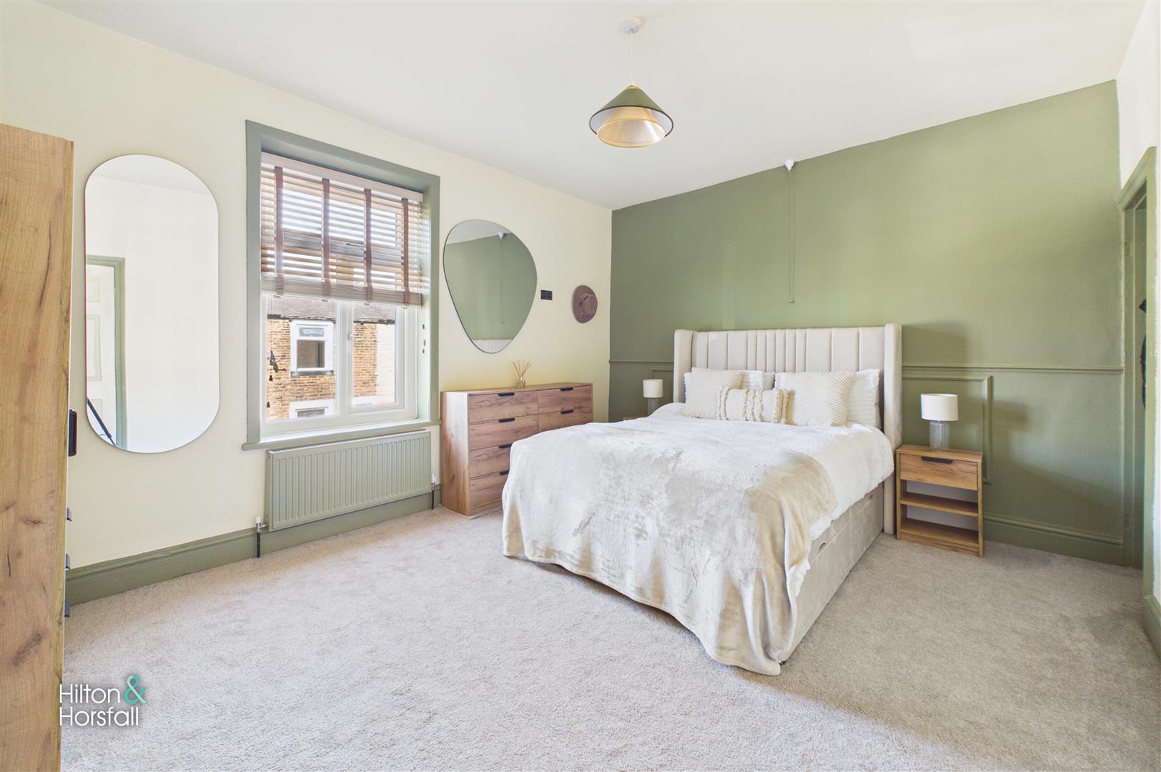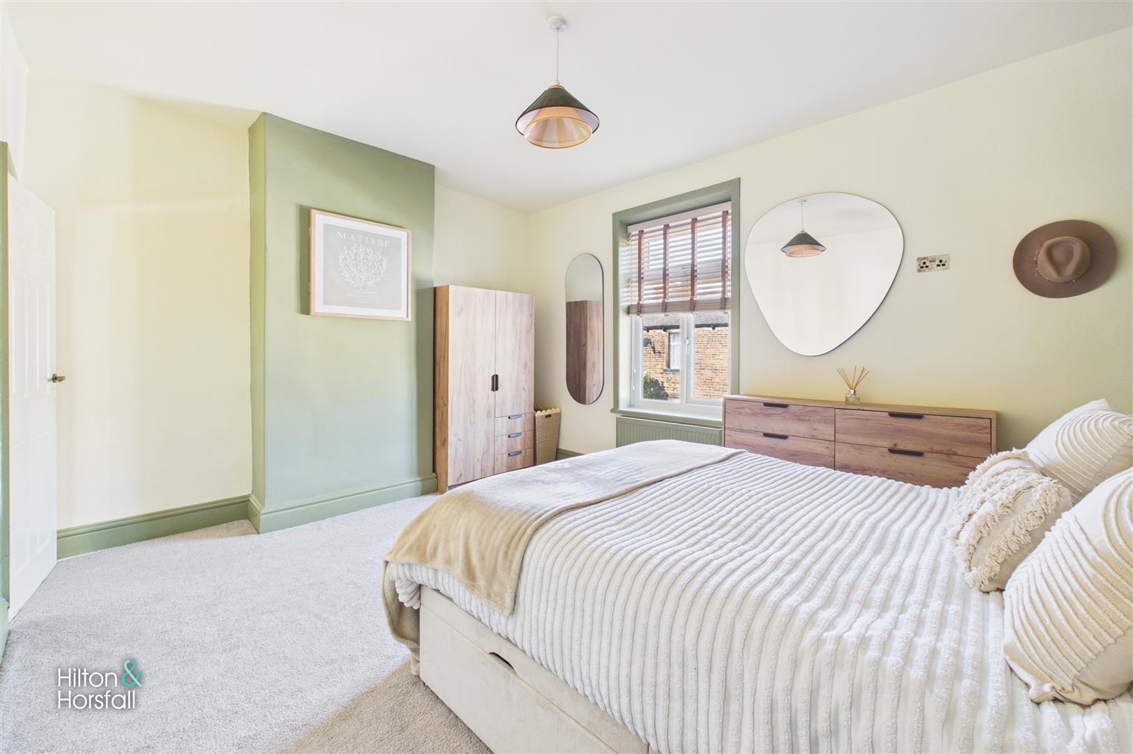 A spacious double bedroom positioned to the front of the property, having a large window allowing for plenty of natural light. The room offers ample space for freestanding furniture and is beautifully presented, creating a comfortable and relaxing environment.