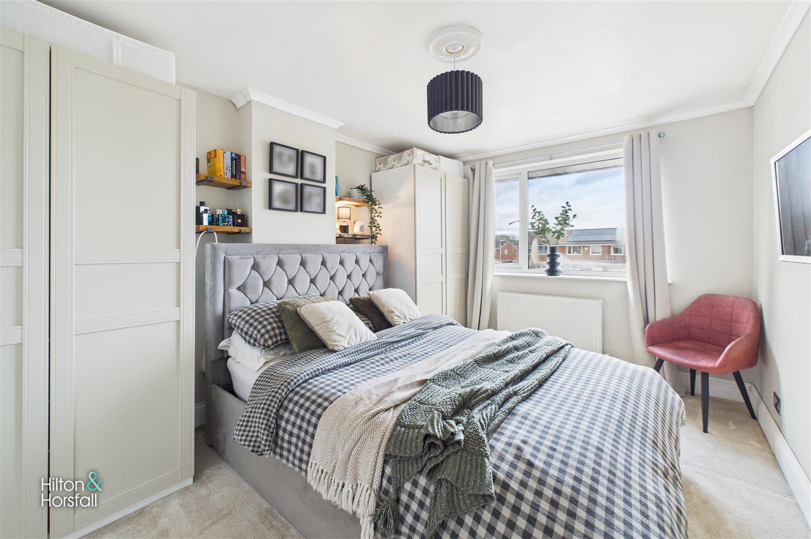 A generous double bedroom positioned at the front of the property, featuring a large window, fitted wardrobes and neutral décor. Offers ample space for additional furnishings and enjoys a bright, airy feel.