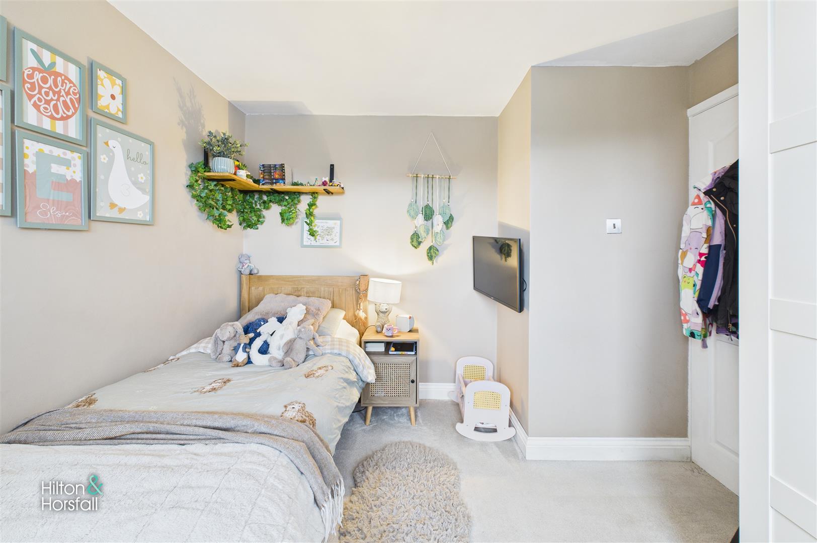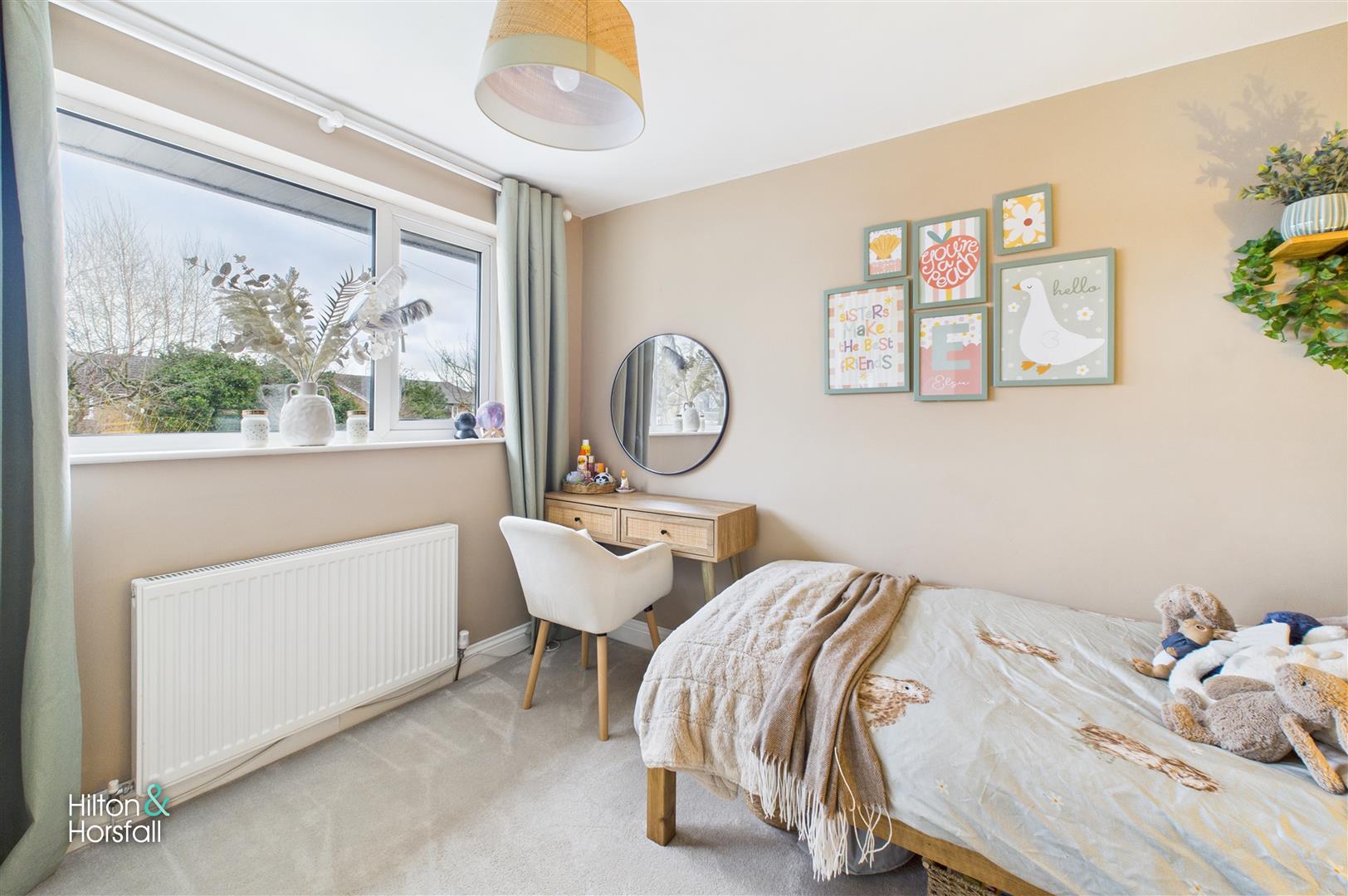 A well-proportioned bedroom overlooking the rear garden, finished in neutral tones with plenty of natural light. Offers space for a bed, storage and a desk or dressing area, making it ideal as a child’s bedroom or comfortable guest room.