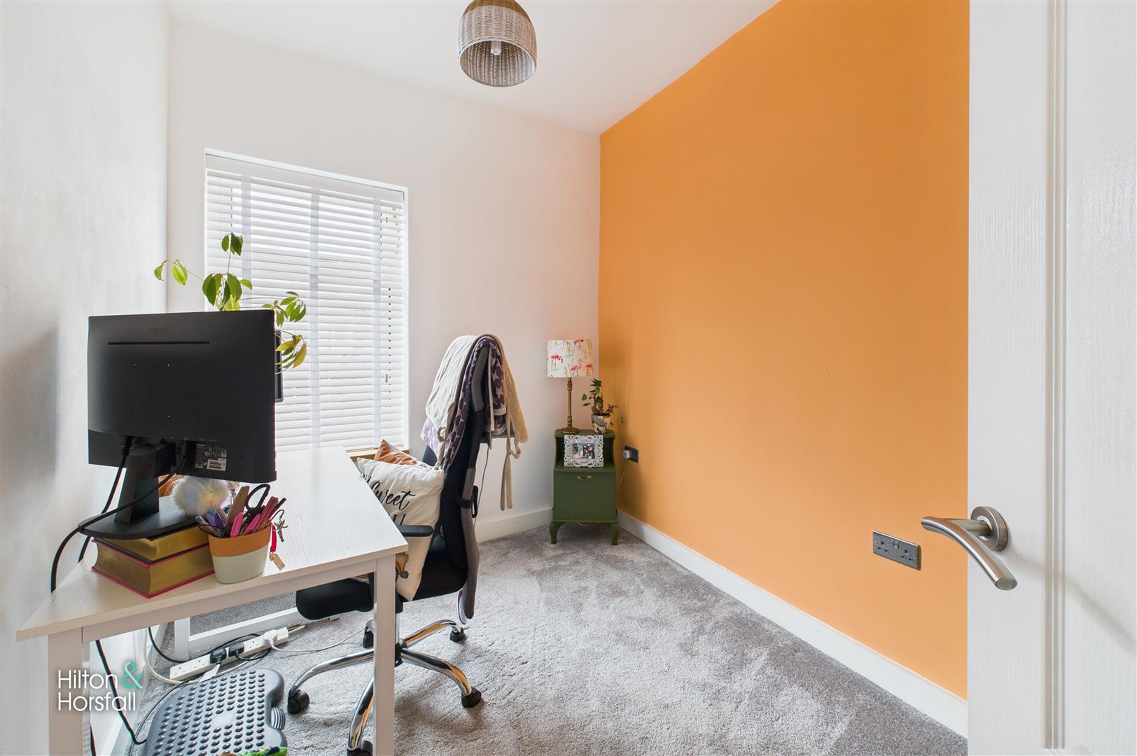 Situated to the rear elevation, this third bedroom is currently used as a home office but would also make an excellent single bedroom, nursery, or dressing room. The space is well presented with modern décor, including a feature wall, uPVC double glazed window, and central heating radiator. Finished with soft carpeting, this versatile room provides flexibility to suit a variety of lifestyle needs.