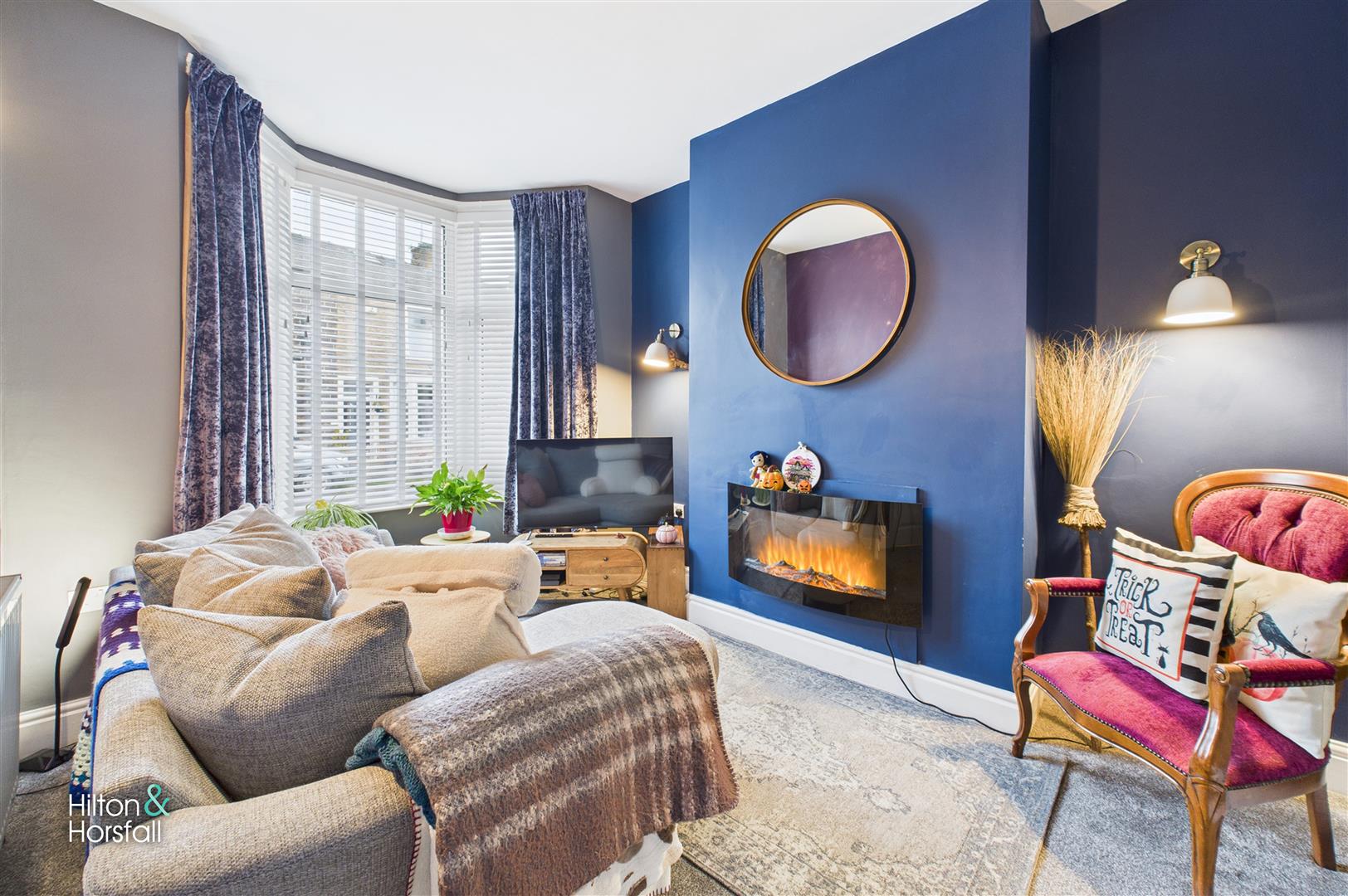 Positioned at the front of the property, this beautifully presented reception room features a large bay window that allows an abundance of natural light to flow through, creating a bright and inviting atmosphere. The space is tastefully decorated with a modern colour palette and includes a feature wall with an inset electric fire, offering both warmth and style. Finished with quality carpeting and ample room for furnishings, this room provides a comfortable and welcoming space ideal for relaxation or entertaining guests.