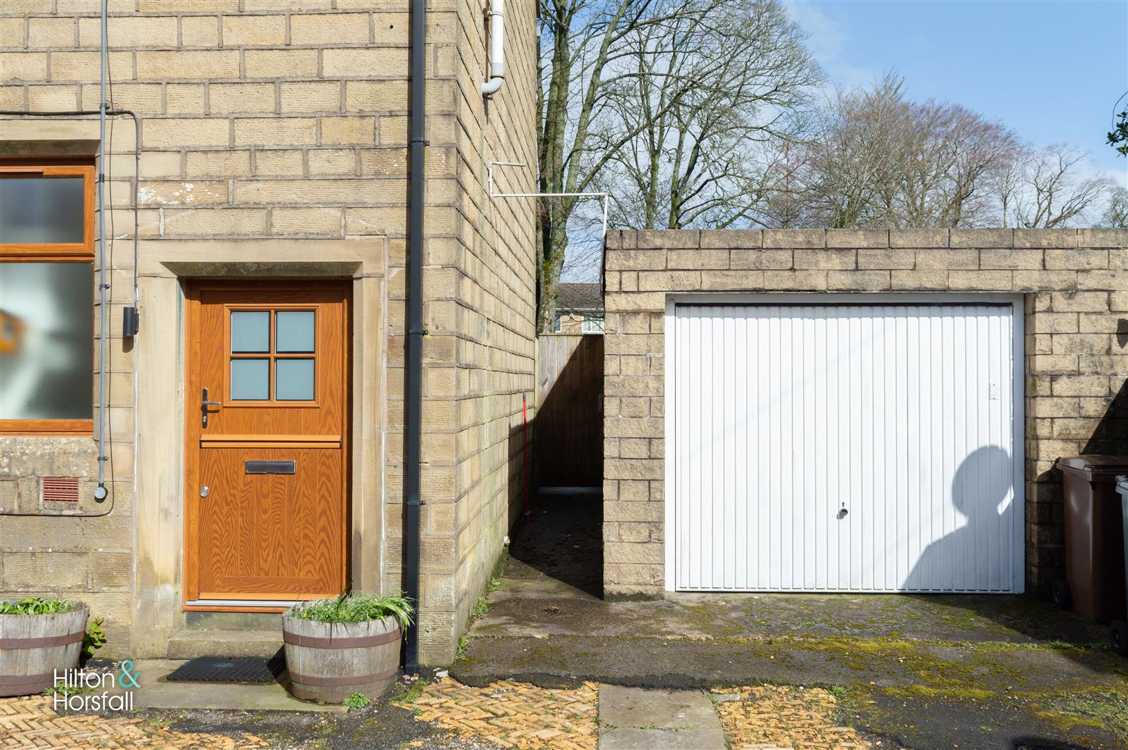 To the front of the property is a shared block-paved courtyard providing off-road parking, along with access to a detached garage offering further storage or secure parking. To the rear is a particularly generous garden, mainly laid to lawn with mature trees and a pleasant open aspect, creating a fantastic space for families and outdoor entertaining. There is also a large storage shed and a paved seating area, ideal for enjoying the warmer months.