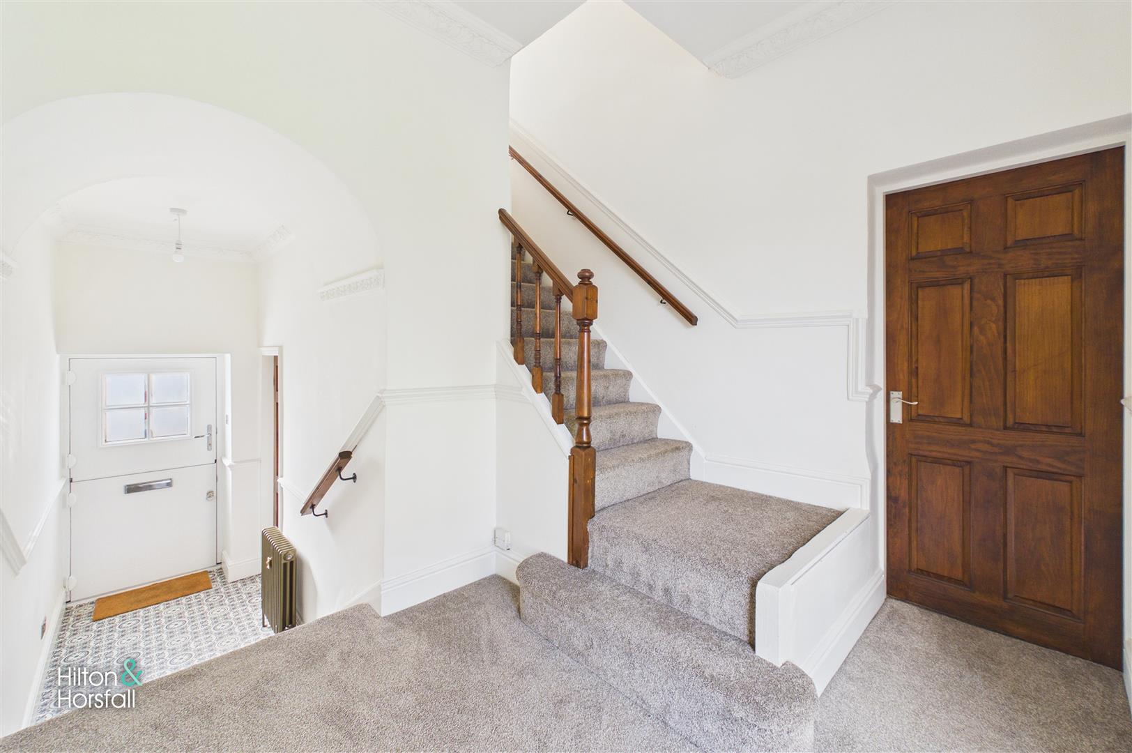 A spacious and inviting entrance hall with stairs leading to the first floor, complemented by traditional features and neutral décor. The space benefits from a door to the front and a glazed door providing access out to the rear garden, allowing for plenty of natural light and a pleasant outlook. A great introduction to the home.