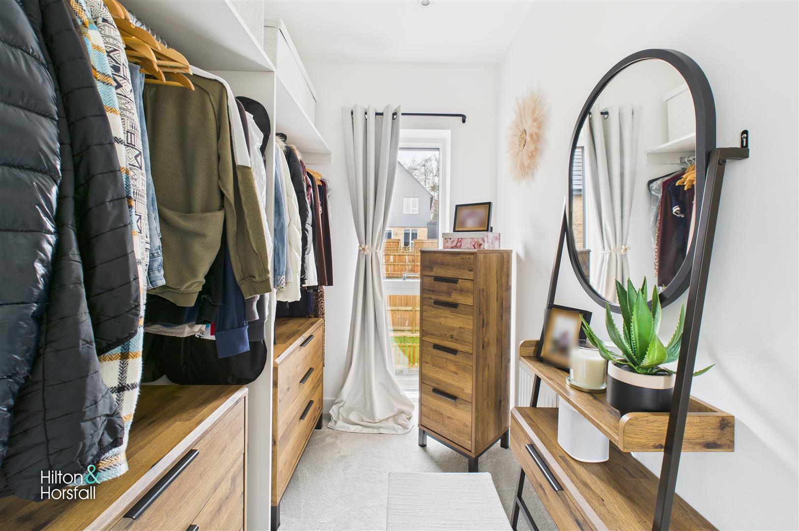 A well-designed walk-in dressing room offering excellent hanging and storage space, providing a practical and organised extension to the principal bedroom. Finished with neutral décor and natural light, this space adds a touch of luxury and convenience to the main bedroom suite.