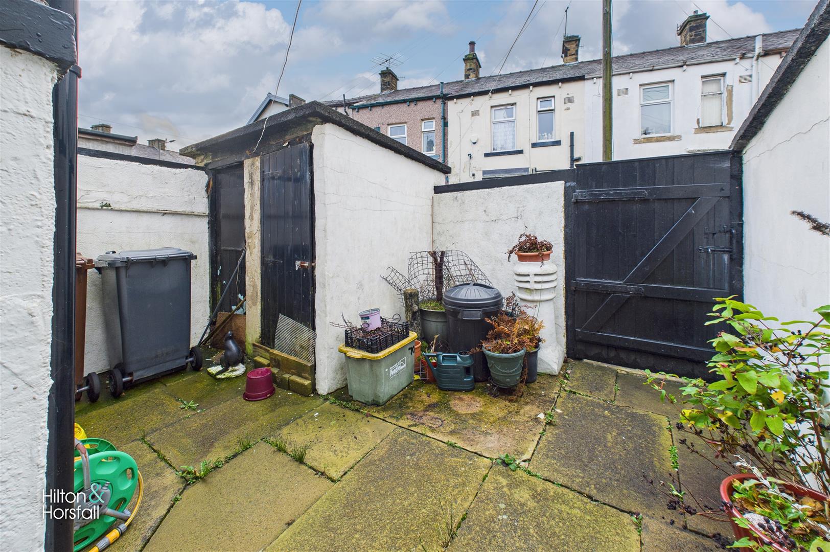 To the rear of the property is an enclosed, low-maintenance yard providing a private outdoor space. The yard includes a useful outbuilding for storage and gated access to the rear, making it practical for everyday use, bin storage and general storage needs.