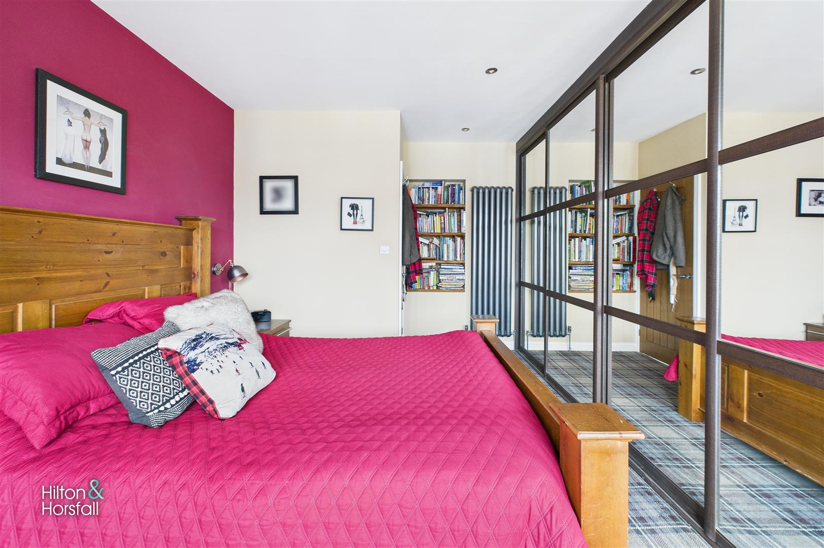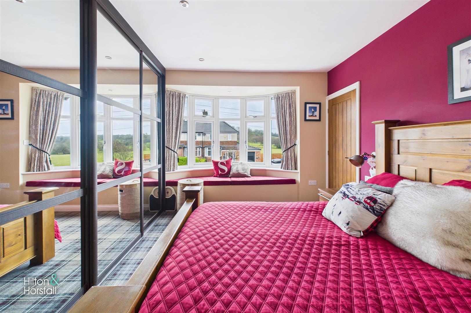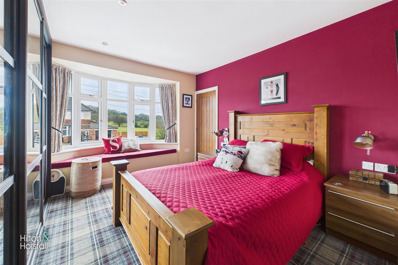 Positioned at the front of the property, the spacious main bedroom enjoys a large bay window with attractive views and a built-in window seat, creating a lovely place to relax. The room is well-appointed with extensive fitted wardrobes and offers ample floorspace for additional furniture. Access is provided to a private en-suite bathroom.