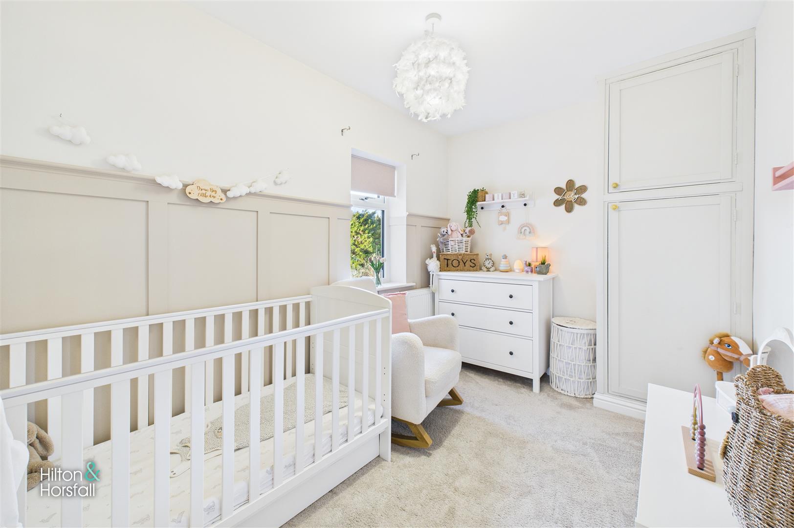 A well-presented third bedroom located to the rear of the property, finished in soft neutral tones and enjoying a pleasant outlook. The room is ideally suited for use as a child’s bedroom, nursery or home office and continues the high standard of finish seen throughout the home, offering a bright and comfortable space with flexibility to suit a range of needs.
