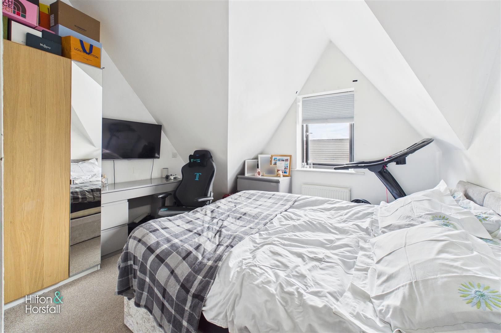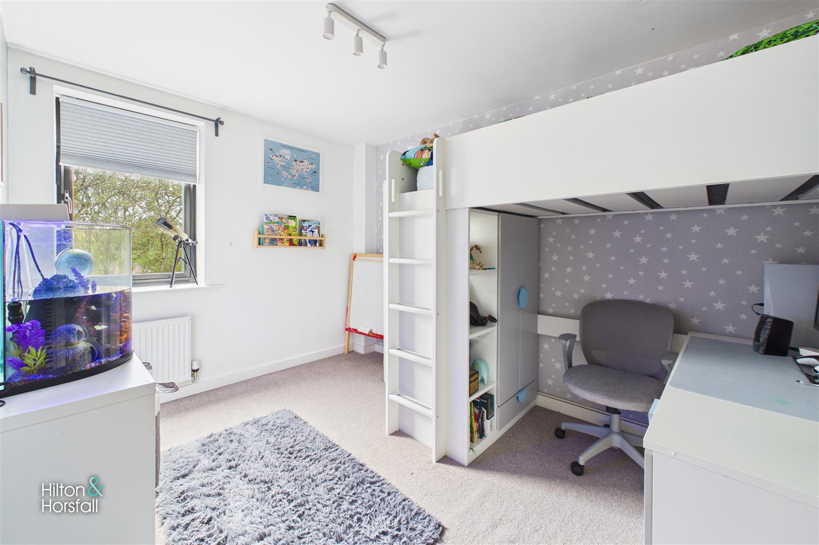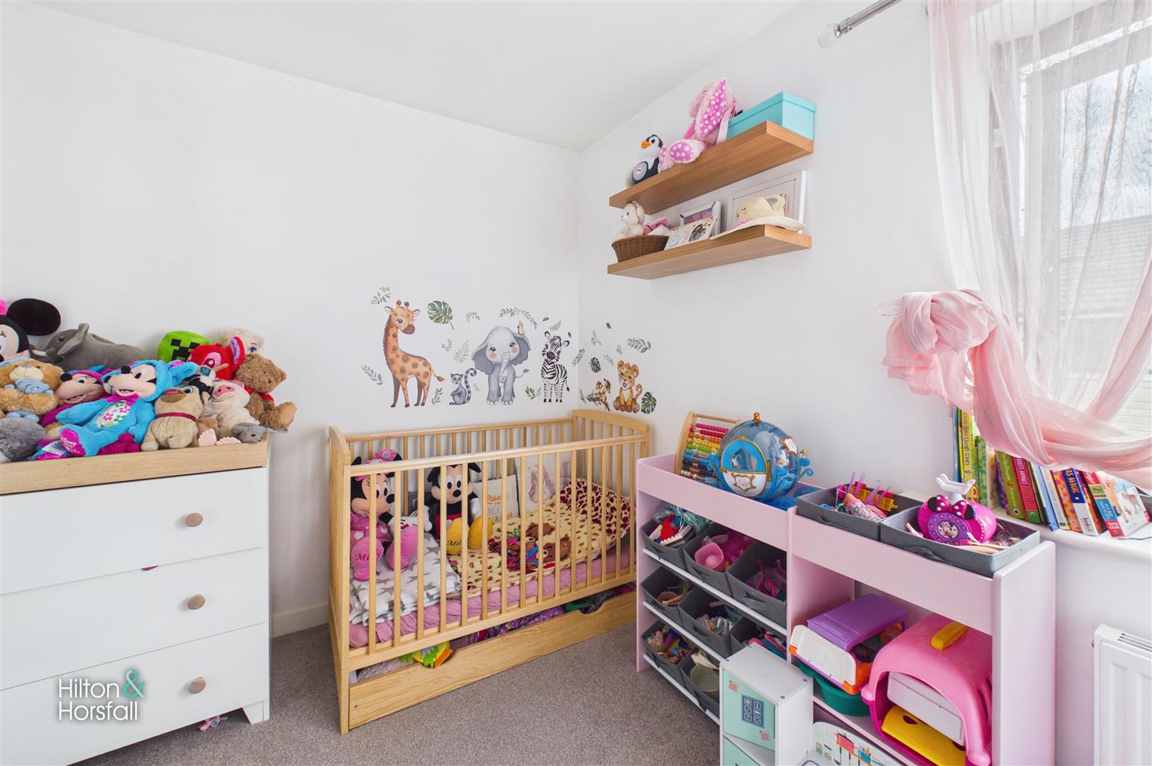A well-proportioned second bedroom positioned to the rear of the property, enjoying pleasant outlooks and an abundance of natural light. The room offers ample space for bedroom furniture and is currently utilised as a child’s room, demonstrating its versatility, with neutral décor and fitted carpet throughout.