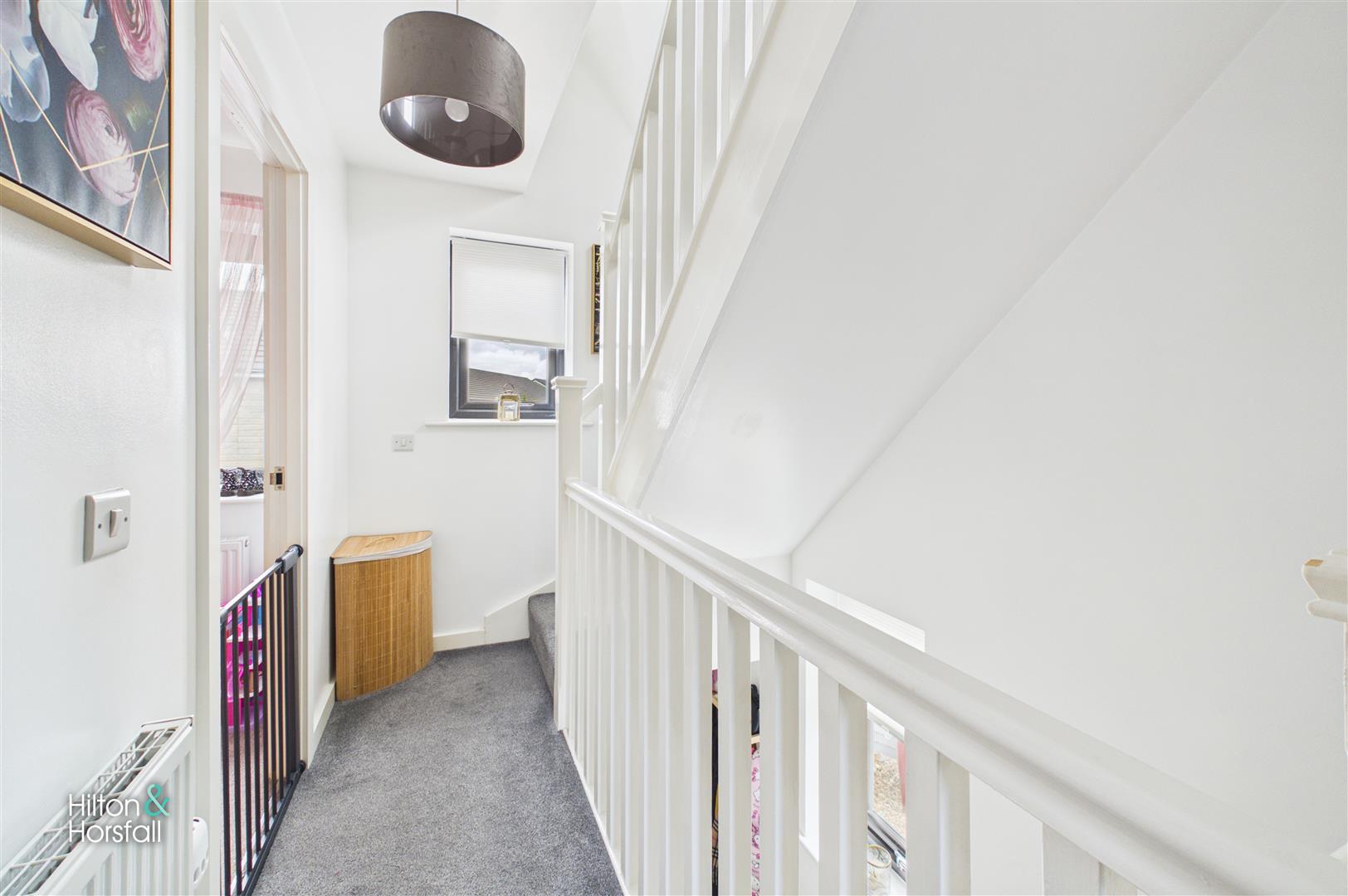 A bright and well-presented landing area with a window allowing for natural light, creating a pleasant and airy feel. The space provides access to the first floor rooms and benefits from a neutral décor and fitted carpet, continuing the modern finish found throughout the property.